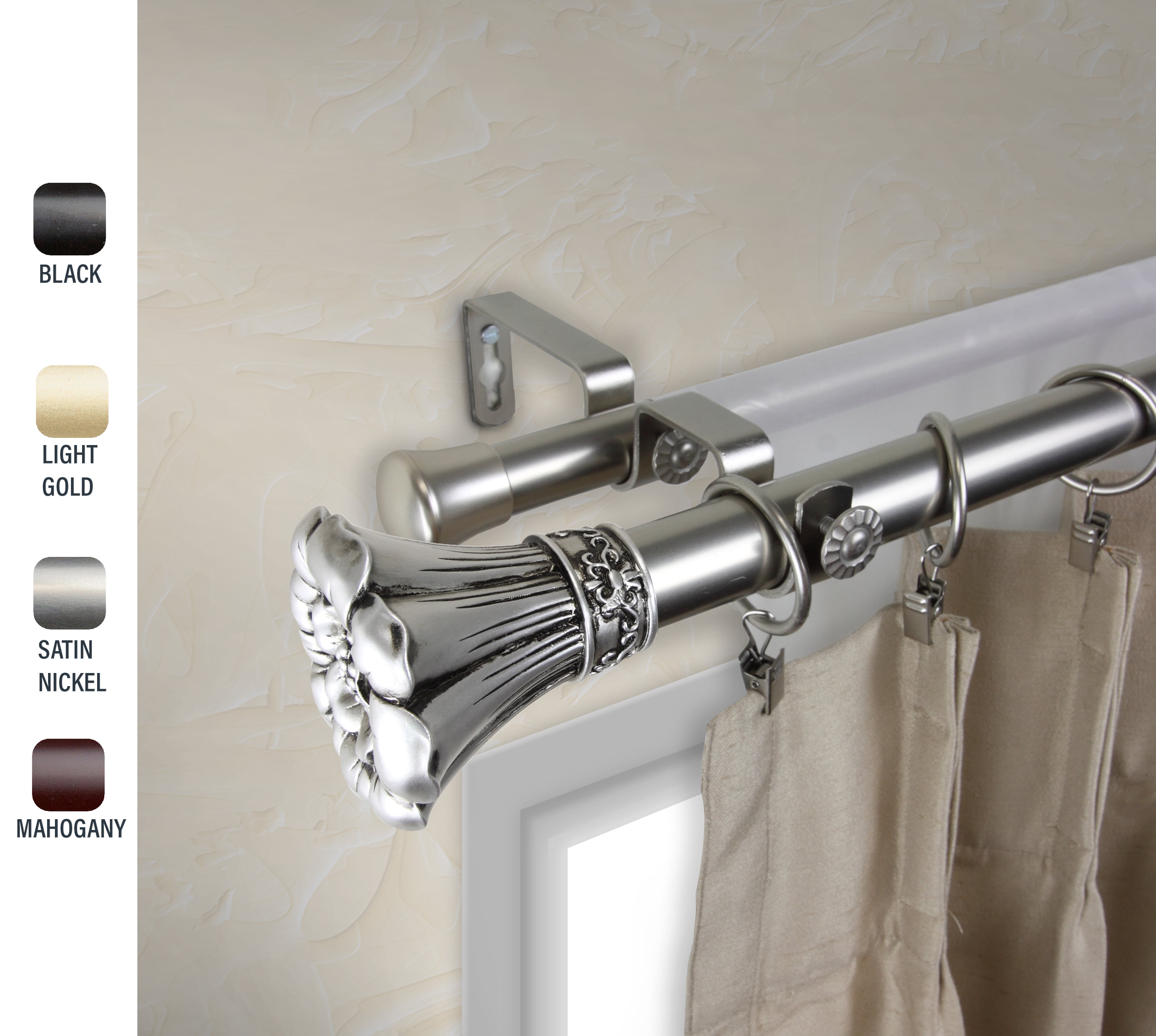 Rod Desyne Home Decorative Blossom Double Curtain Rod 120 170 Inch