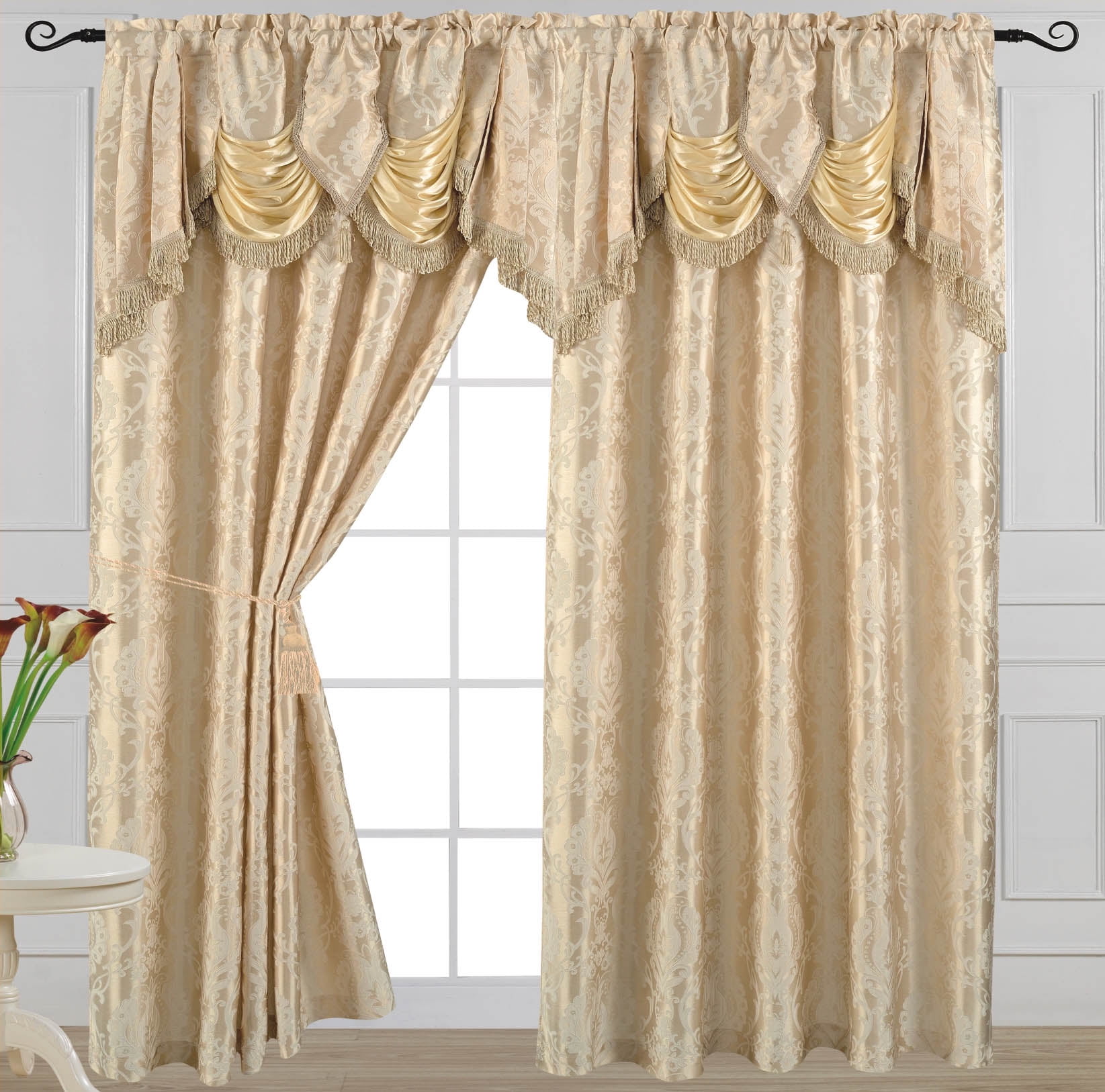 Luxury Jacquard Curtain Panel With Attached Waterfall Valance 54