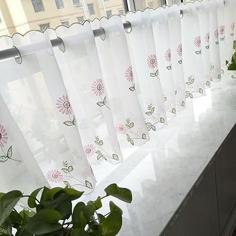 Zebrasmile Embroidered Floral Window Tier Caf Curtain Semi Sheer