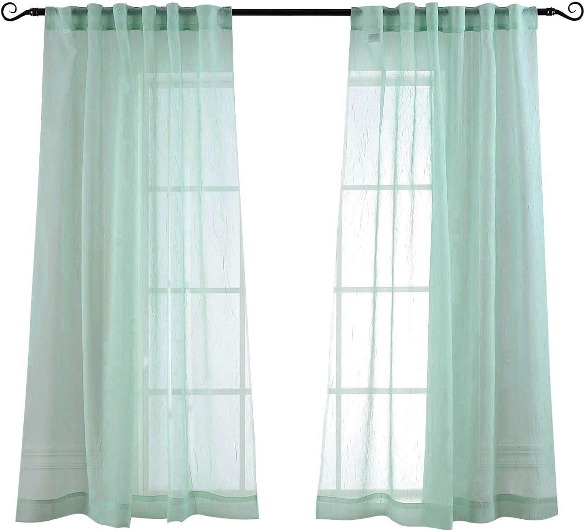 Wontex Faux Linen Aqua Sheer Curtains Rod Pocket Semi Sheer