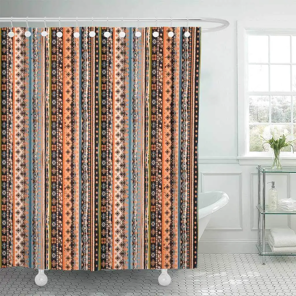 Shower Curtain With Hooks Colorful Chic Abstract Ethnic Tribal