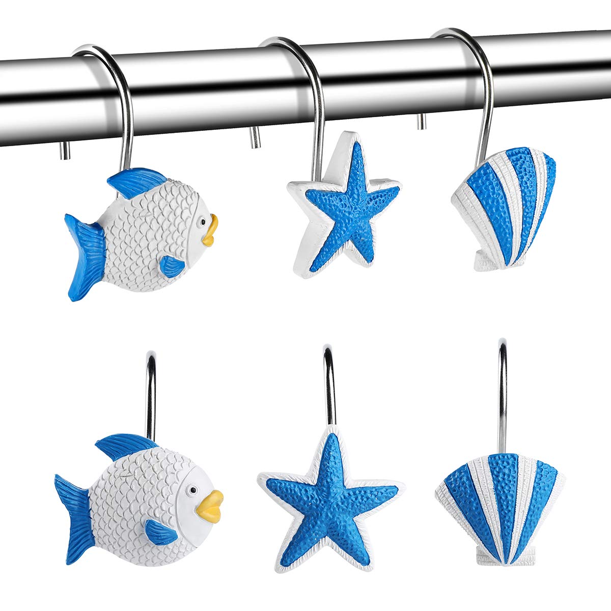 Home Kitchen Yukuntang Shower Curtain Hooks 12 Pcs Seashell Anti