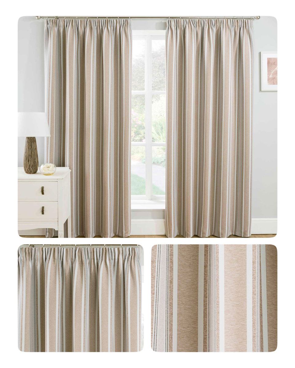 Wilson Striped Lined Curtains 46 X 90 Natural Brown Ivory Cream