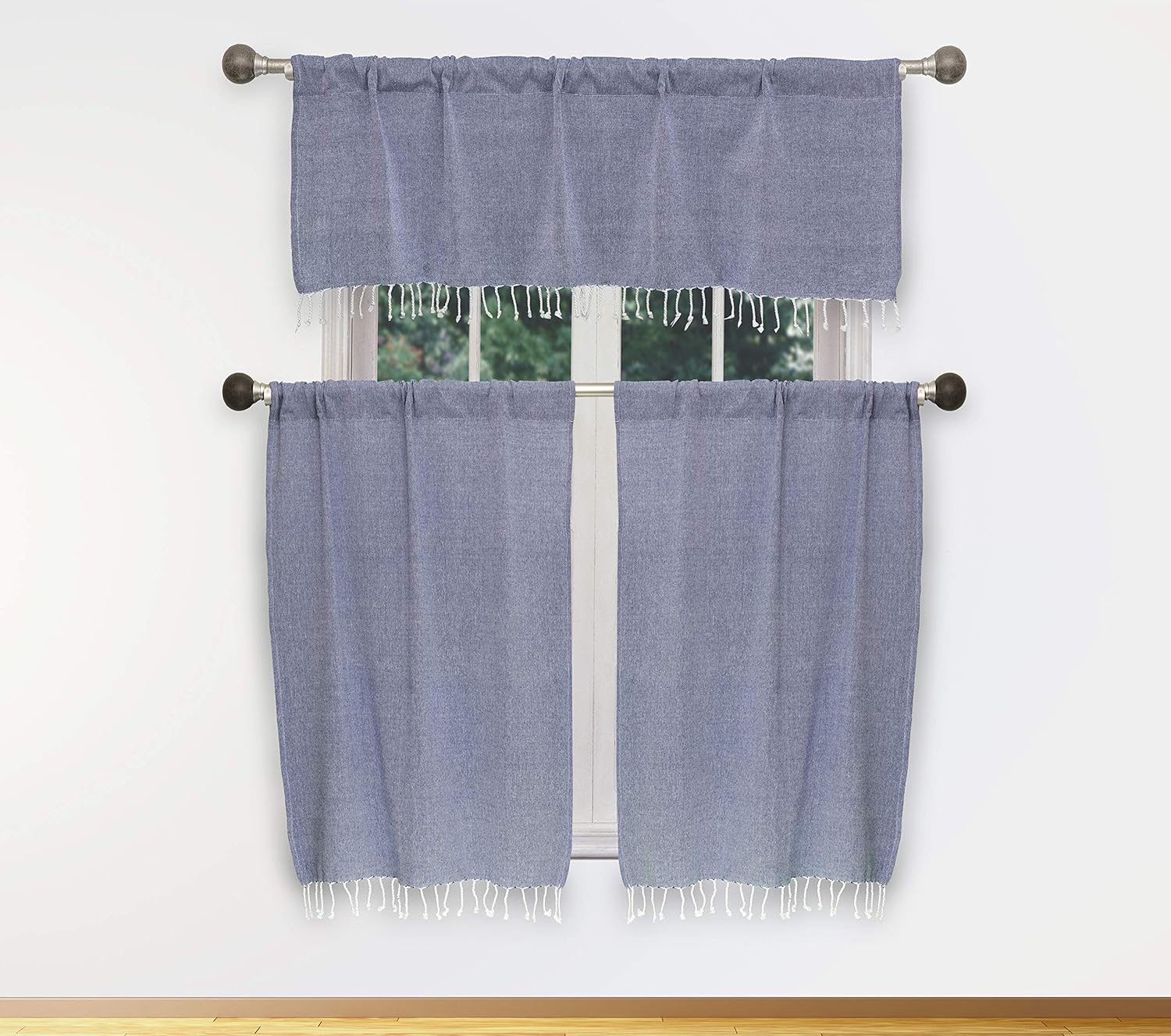 Dainty Home Lucia Kitchen Window Curtain Set Of 3 Blue In 2019