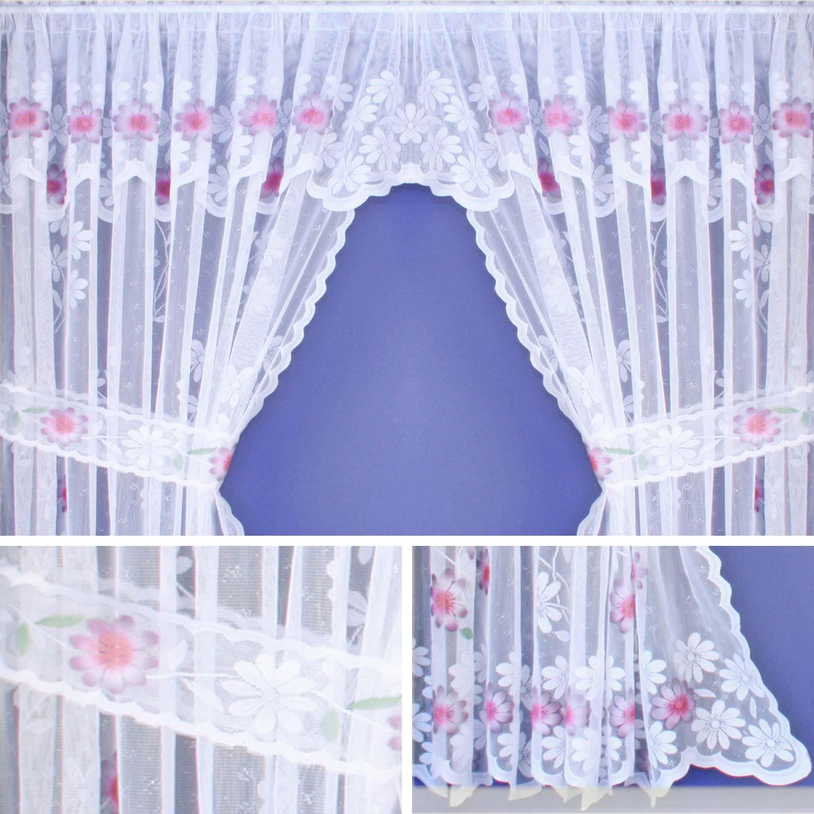 Home Kitchen Lace Coffee Floral Curtains 160x60cm And 160x30cm Up