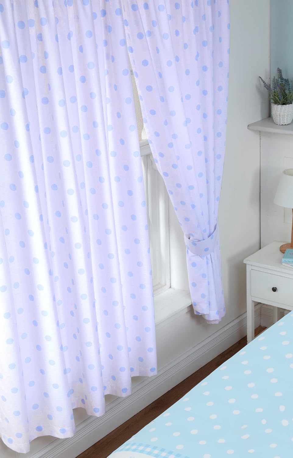 Country Beautiful High Quality Baby Blue And White Polka Dot Curtains