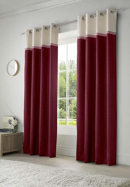 Red Burgundy Thick Heavy Lined Eyelet Curtains 3 Sizes Ebay
