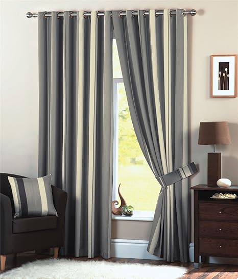 Wilson Striped Lined Curtains 90 X 90 Charcoal Grey Cream Ash