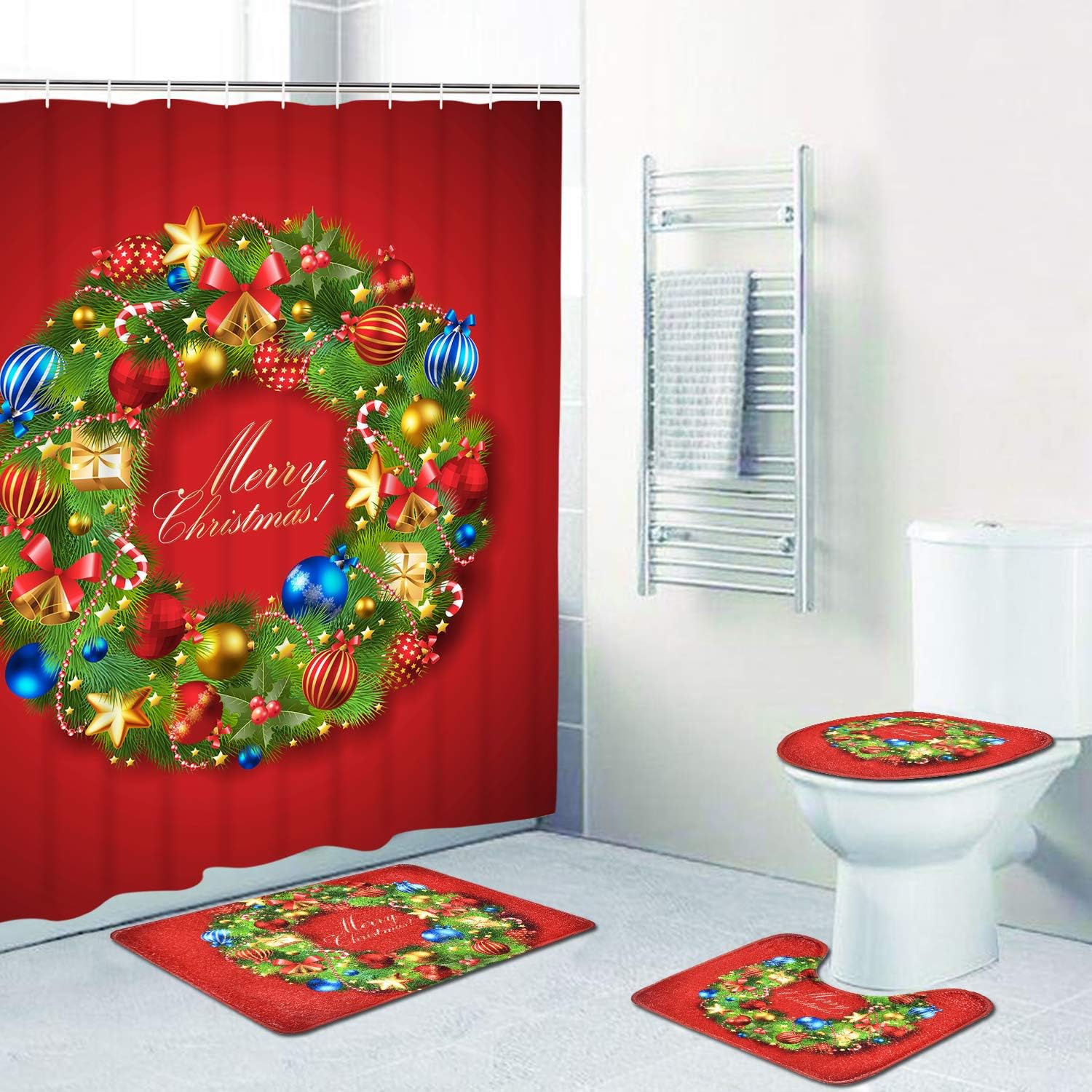 Amazon Com Hamkaw Merry Christmas Shower Curtain Sets 4 Pcs Xmas
