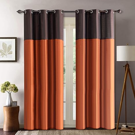 Nisa Curtains In Papaya Orange And Chocolate Brown Color Fun