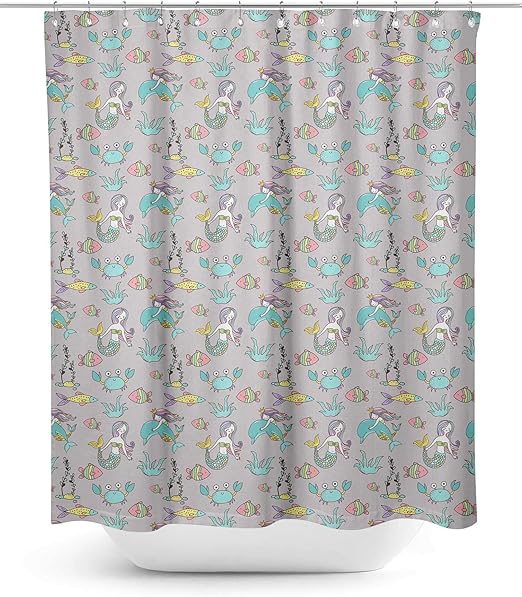 Fangkun ocean world theme shower curtain happy clown fish bath curtains set polyester fabric waterproof curtains 12pcs shower hooks 72 x 72 inches.