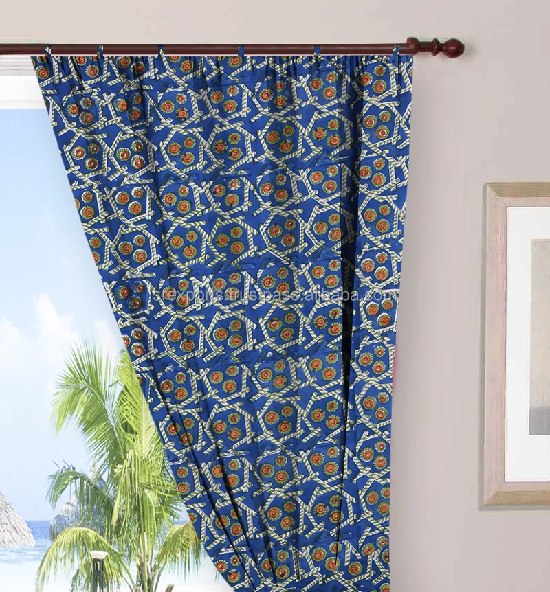 Copy Of Hand Block Printed Cotton Tab Top Loop Curtains Quest