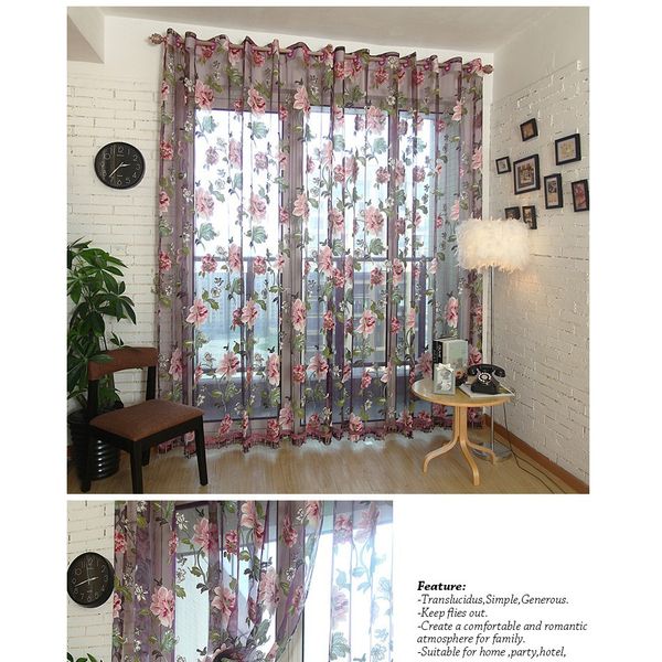 2019 Hot Sale Purple Floral Tulle In Sheer Curtains For Living