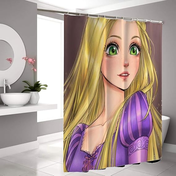 Shower Curtain Bathroom Design Doll Dark Hair And Cute Etsy