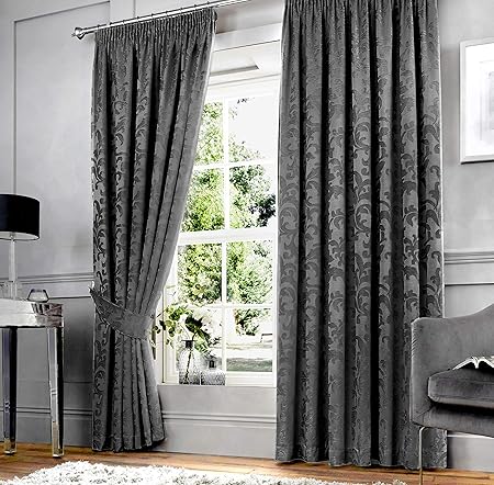 Jacquard Fully Lined Dark Grey Pencil Pleat Curtains Imperial Rooms