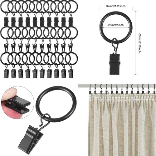 Black Metal Curtain Rings Clips Hanging Curtain Pole Rod Voile Net
