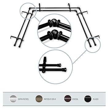 Adjustable Double Bay Window Curtain Rod Set
