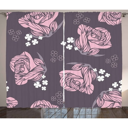 Floral Curtains 2 Panels Set Vintage Rose Pattern With Soft Color