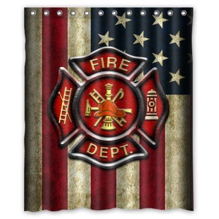 Special Offer Custom Firefighter Waterproof Bathroom 66x72 Inch