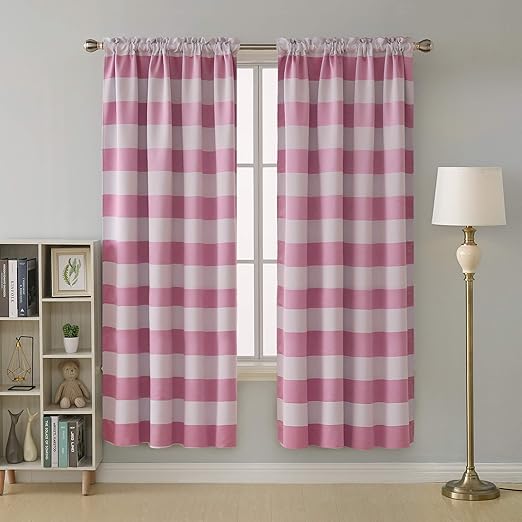 Luscious Pink Polyester Plaid Kids Curtain For Girls Room