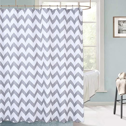 Amazon Com Lurson Striped Shower Curtain Neutral Grey And White