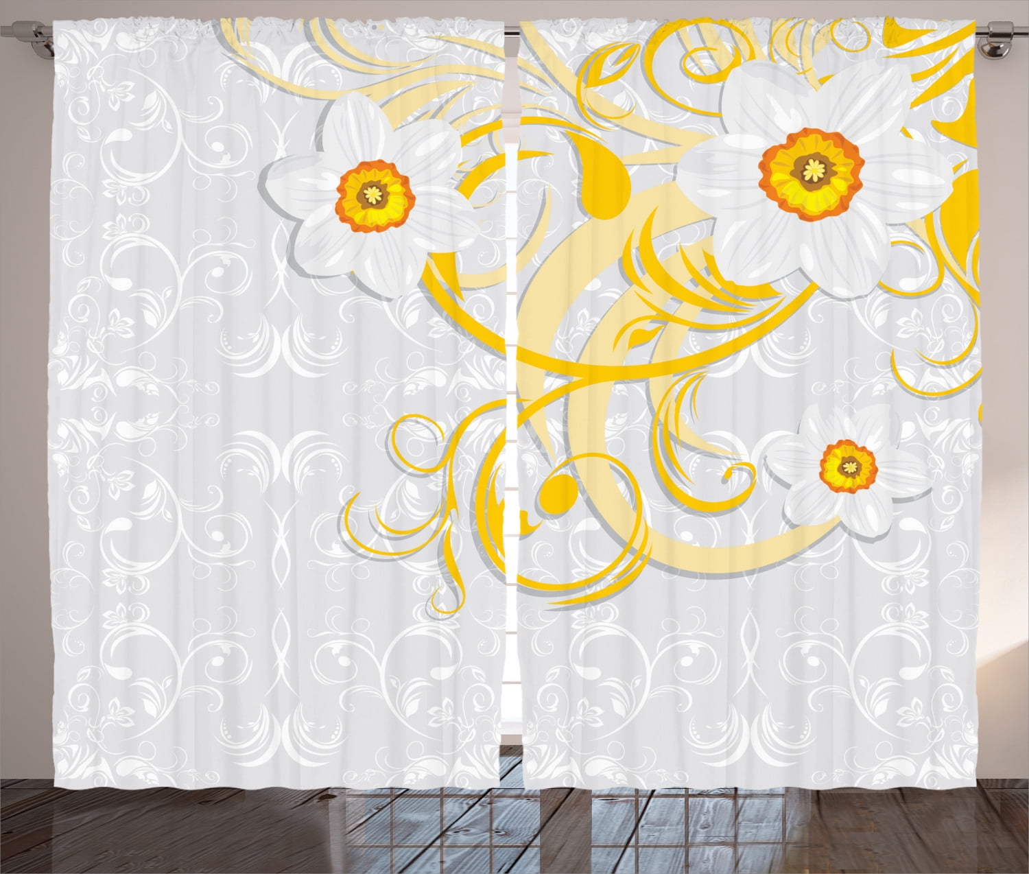 Modern Farmhouse Curtains Grey Floral Curtains With Yellow Drapes