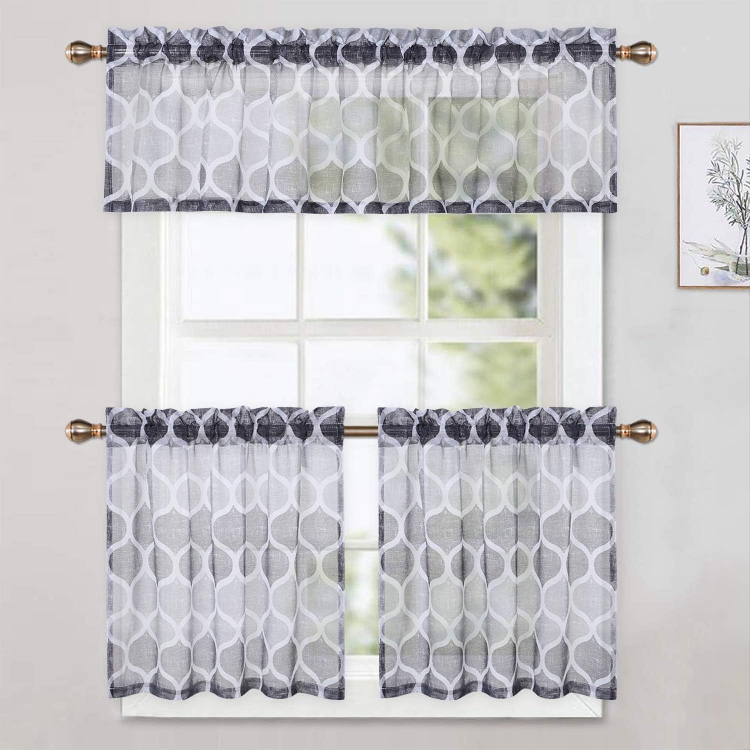 Caromio 3 Pieces Kitchen Sheer Tier Curtains And Valance Set