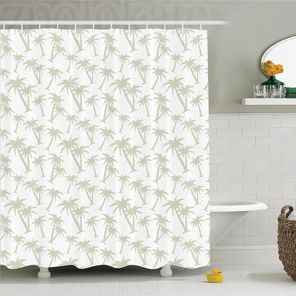House Decor Shower Curtain Set Tropical Coconut Palm Trees Pattern