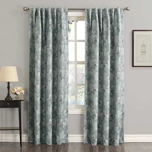 Light Filtering Summit Botanical Indigo Aqua Rod Pocket Back Tab