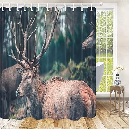 Amazon Com Coolteey Shower Curtains Brown And Green Hunting Deer