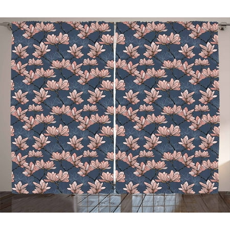 Flowers Curtains 2 Panels Set Pattern With Magnolia Flowers In