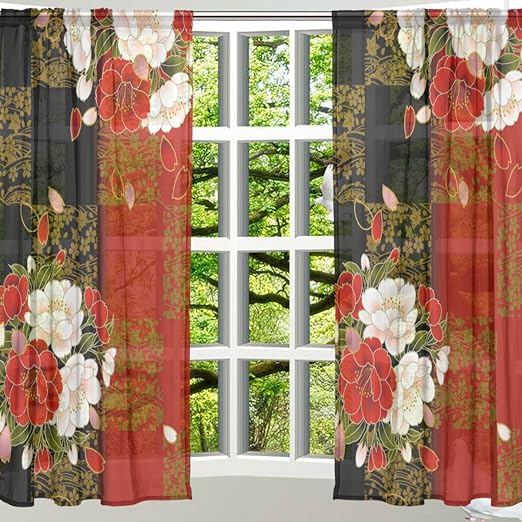 Shop Designart Japanese Floral Pattern Oriental Curtain Panels