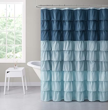 Blue Shower Curtains Fabric Hookless With Peva Liner Bathroom
