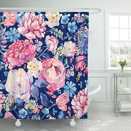 Bathrooms Navy Blue And Green Shower Curtain Grey Pink Floral