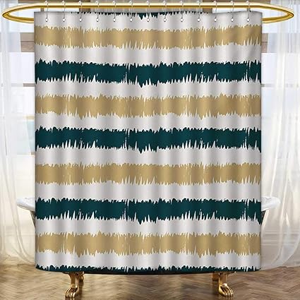 Stunning Blue And Beige Striped Shower Curtain Teal White