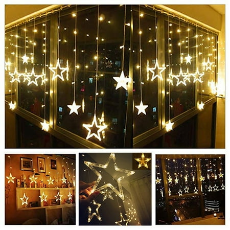 Vova Led Stars Christmas Hanging Curtain Lights String Net Xmas