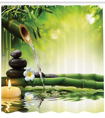 Lb Spa Bamboo Lotus Decor Shower Curtain For Bathroom Asian