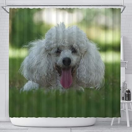 Fabric Shower Curtain With Hooks Animal Poodle Pattern Beautiful