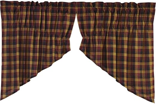 Black Primitive Kitchen Curtains Prim Grove Plaid Swag Pair Rod