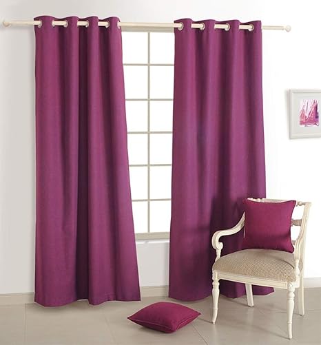 Purple Color Plain Cotton Curtains With Eyelets For Door Namaste