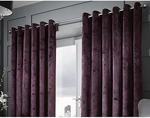 Glamora Interiors Set Of 2 Window Eyelet Curtains Damask Purple
