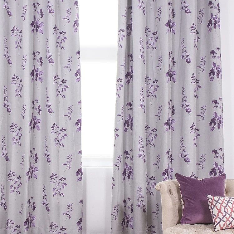 Beautiful Purple Blackout Curtains With Flowers And Leaf Patterns