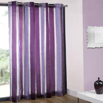 Amazing Voile Net Curtains Ready Made Striped Purple Grey Ebay