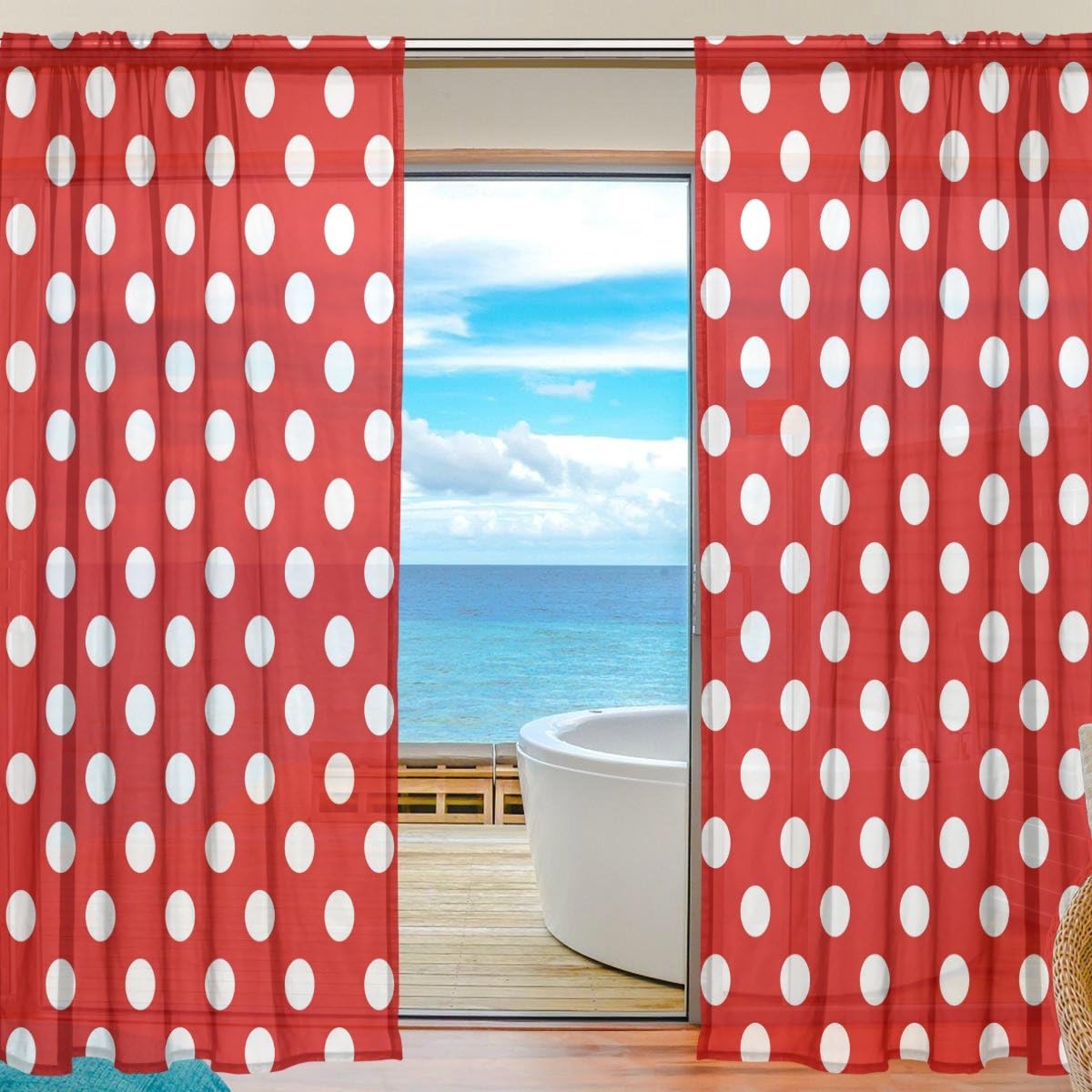 Mydaily Classic Red And White Polka Dot Printed Sheer Window And