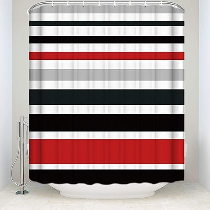 Home Garden Bath Red Black Stripes Fabric Shower Curtain