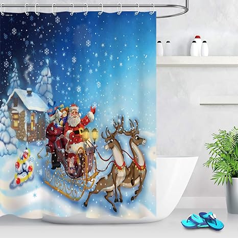 Lb Christmas Shower Curtain 59x71 Inch Wood Wall Xmas Star Bath