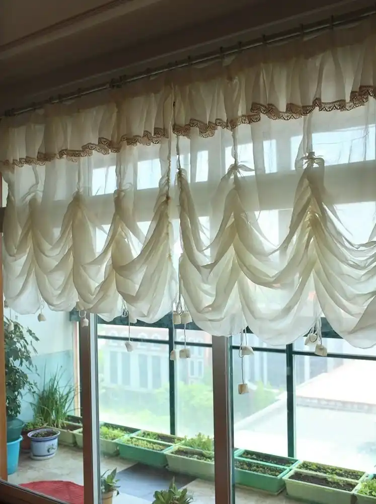 Flower Short Sheer Curtain Ruffled Kitchen Cafe Window Drape 1