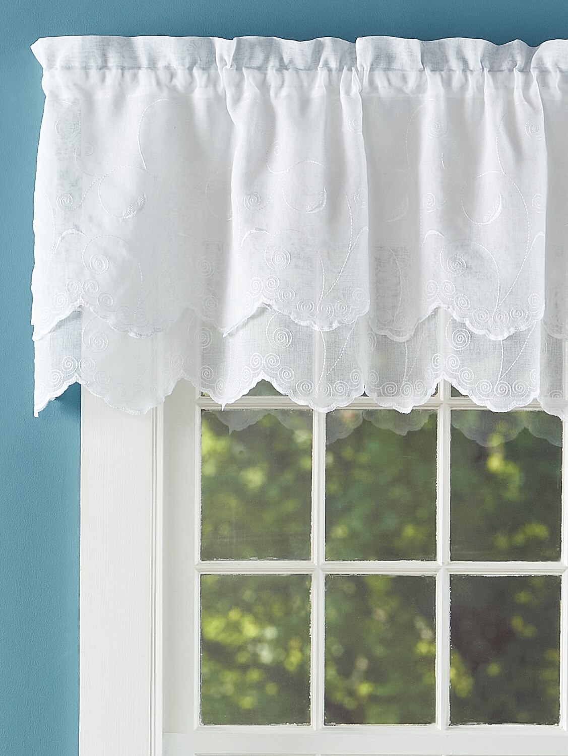 Hathaway Embroidered Semi Sheer Double Scalloped Valance