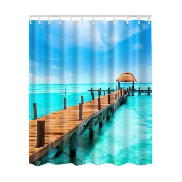2019 New 3d Clear Waterproof Mildew Bathroom Curtain Seaside Style