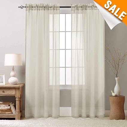 Nicetown Sheer Curtains Linen Textured Country Style Home Decor